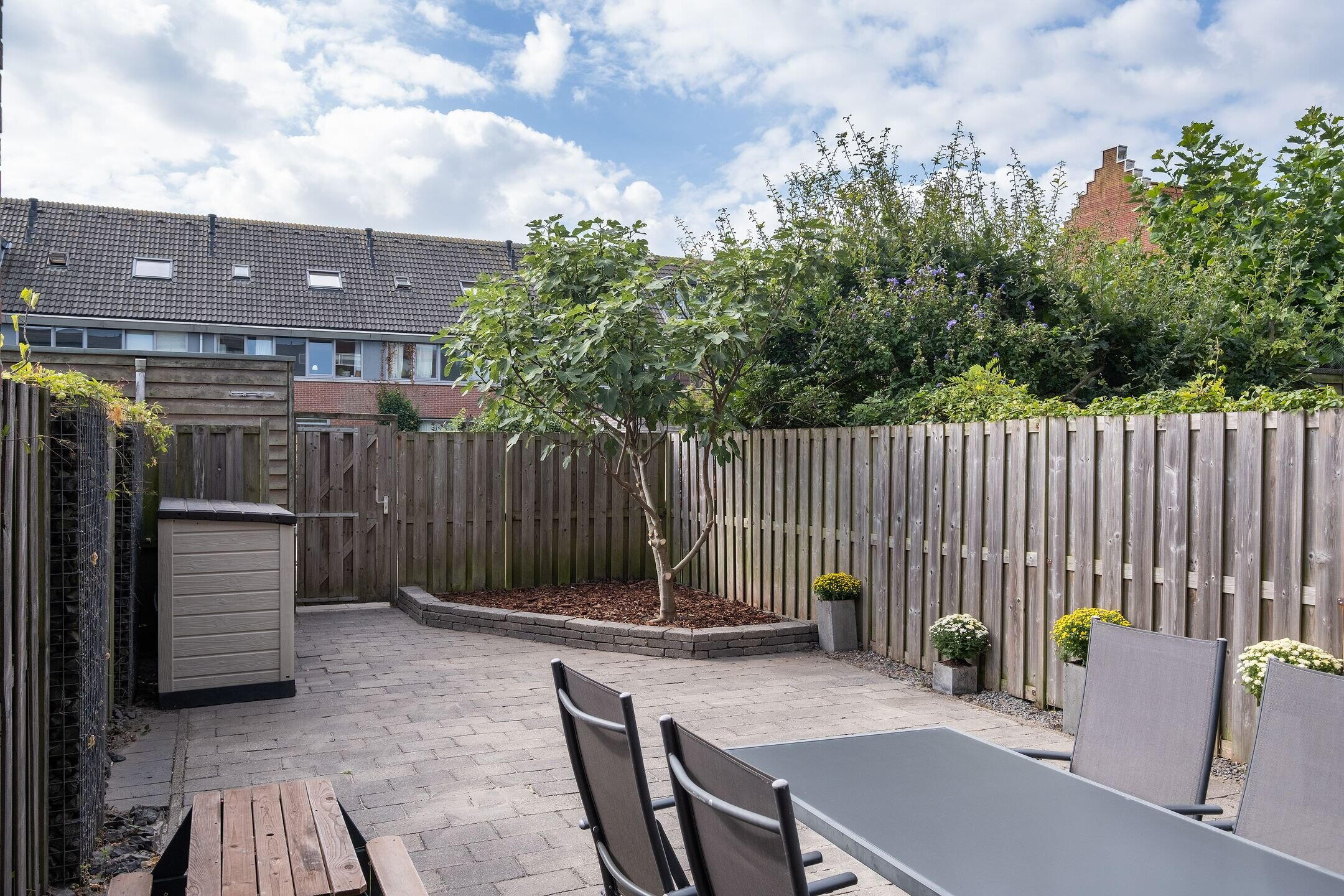 - Diepe, zonnige achtertuin op het zuiden met berging en achterom
