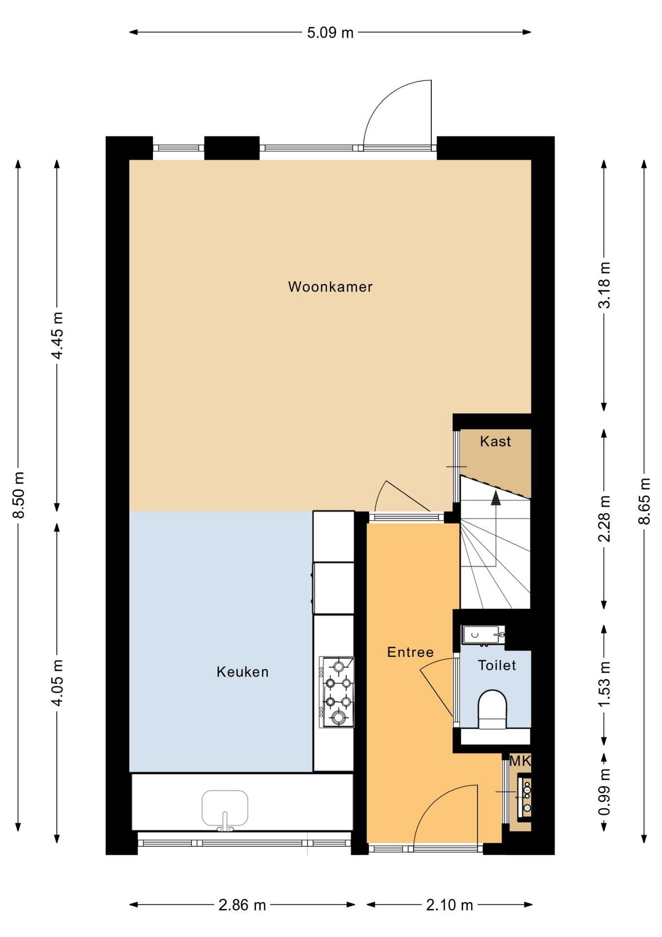 - Gelegen op het zuiden bereikbaar via achterom