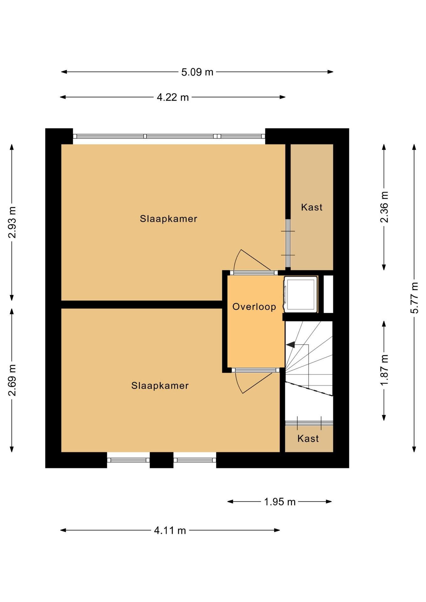 - 83 m² (15,85 meter diep en 5,23 meter breed)